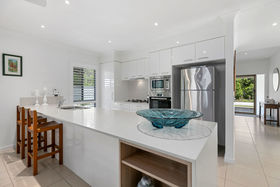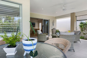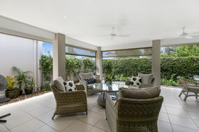 Hidden amongst sensational manicured gardens on a glorious corner block, this coveted design offers luxury living in a cleverly mastered home without compromising space or creature comforts. Situated in the exclusive & secure 'Halcyon Landing', this lovely home is a must see... Designed to impress, this property effortlessly exudes luxury & resort lifestyle. The clever open plan design boasts an enviable chefs kitchen, complete with state of the art appliances. Stone benchtops compliment the soft white cabinetry and expansive island style breakfast bar with luxury waterfall stone top. A generous laundry serves as a further convenience boasting a generous drying court. Seamless flow from the spacious living areas to an expansive wraparound terrace through large stacker doors allows for maximum airflow, space and practicality; complemented by split system air conditioning and fans throughout. Sunshade blinds complete the package ensuring year round comfort. Stunning low maintenance gardens wrap the entirety of the home creating a private, peaceful haven. The master suite is situated at the rear of the home and is complemented by a large walk in robe and ensuite with double basins; this residence has it all. A second ensuited bedroom and study/multifunction room complement and add flexibility to this clever design. Decorated in neutral almond hues and high-end finishes this property is the complete package with nothing to spend. Flooded with natural light and amazing cross breezes this home offers the best in modern compact living without compromising lifestyle. This property is the perfect package, complemented by a 5 star resort community and all that Halcyon has on offer, leaving the new owner spoiled for choice... 2 ensuited bedrooms & multi function room Spacious kitchen with state of the art appliances Open plan living at its finest Seamless indoor outdoor flow Great entertainer Double car garaging Resort style plantation shutters This sensational home not only offers quality and every attention to detail, it is energy efficient, low maintenance and offers peace of mind and the security of a gated community. Immerse yourself in the 5 star facilities on offer and the community spirit synonymous with the Halcyon name and enjoy the lifestyle it affords its residents.
