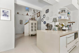 • Kitchen boasts latte coloured Caesar stone solid bench tops with waterfall ends & pull-out pantry